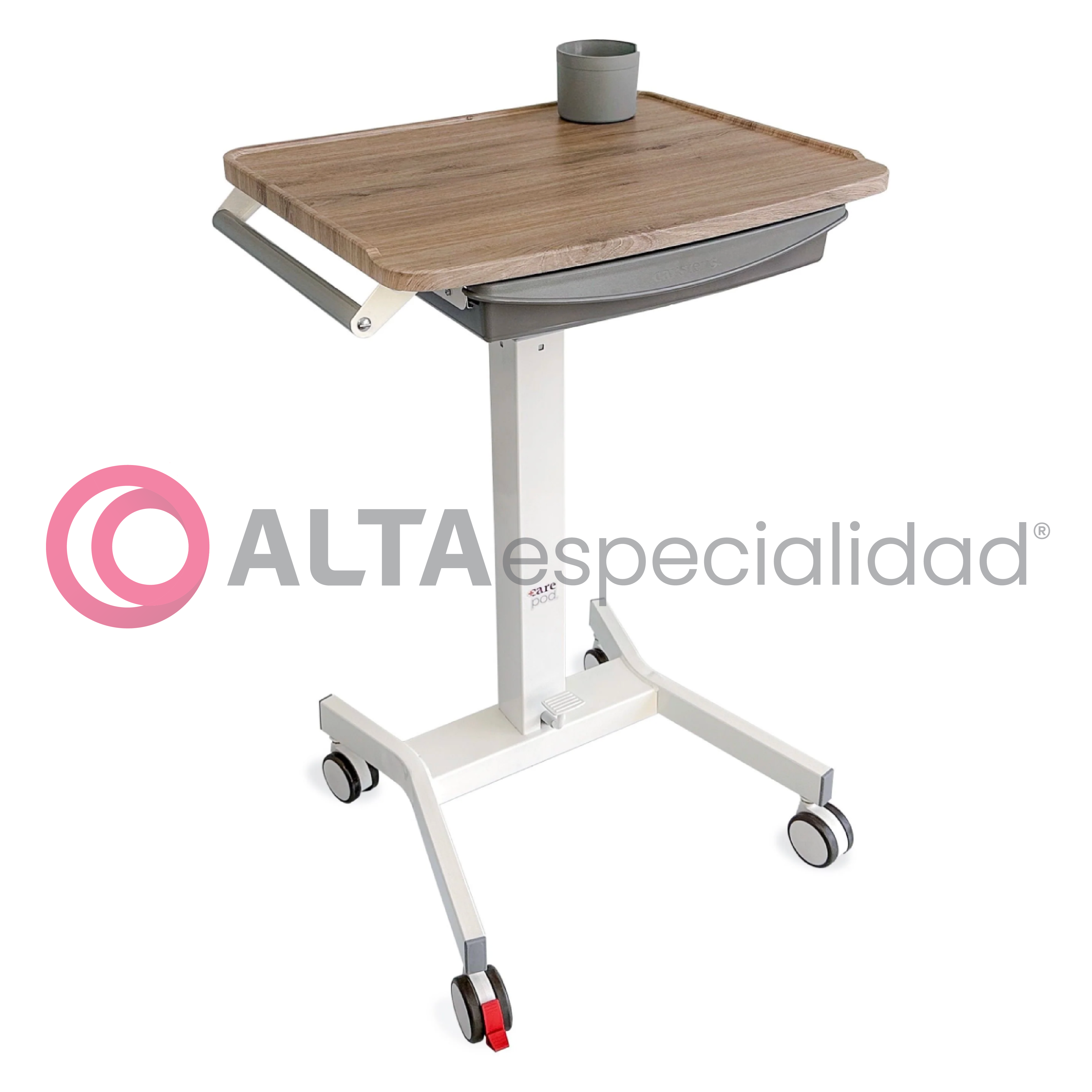Escritorio móvil de superficie laminada de 63.5 x 44.45cm. Diseño con borde elevado perimetral para evitar que los artículos se deslicen. Características: - Cuenta con un cajón de suministros extraíble